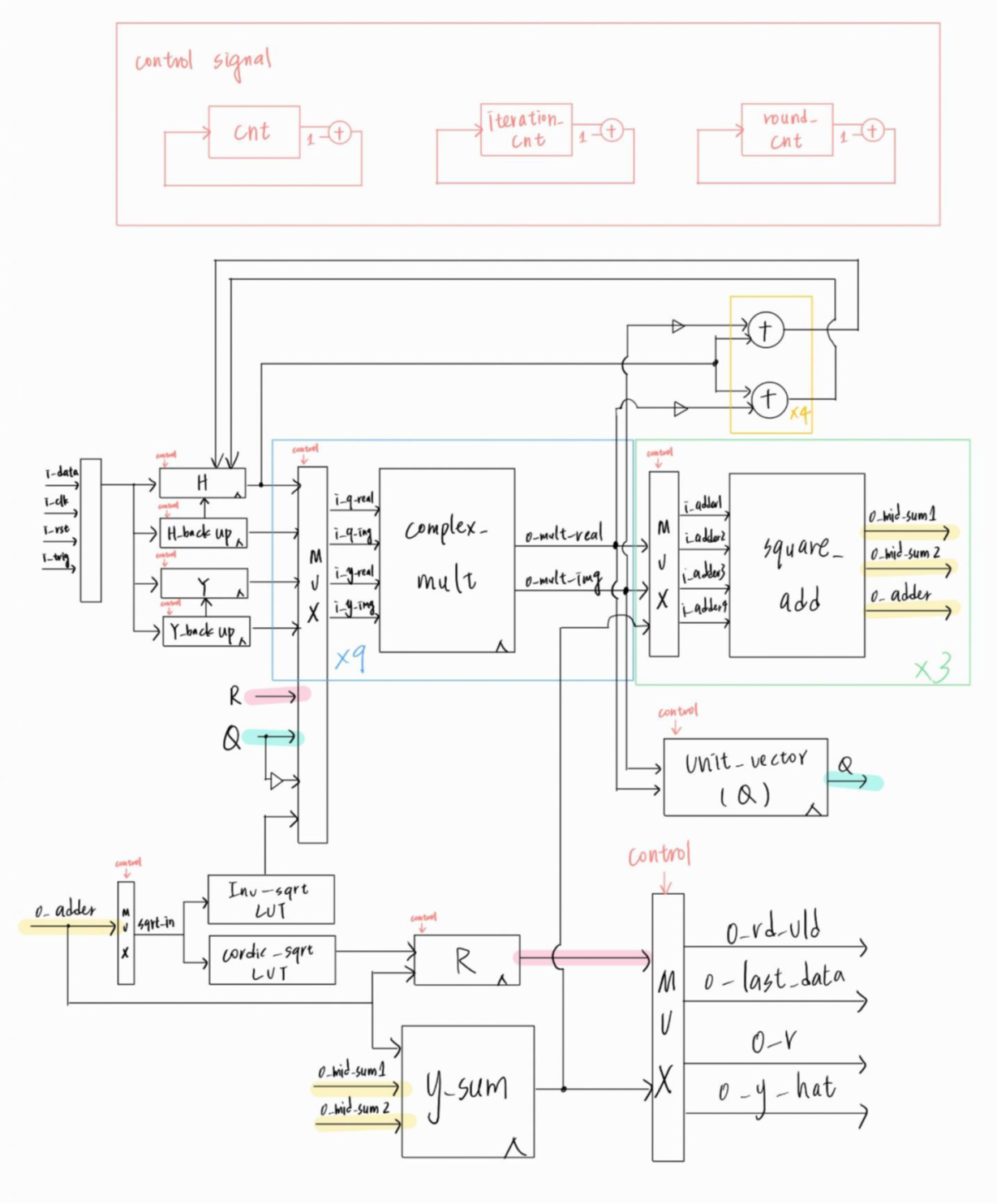 The project focuses on implementing a QR Decomposition (QRD) module, a critical component in modern wireless communication systems, for a 4x4 MIMO receiver. By transforming complex channel matrices into simpler forms, QRD enables efficient Maximum Likelihood (ML) demodulation, enhancing system reliability and throughput in the presence of AWGN (Additive White Gaussian Noise).